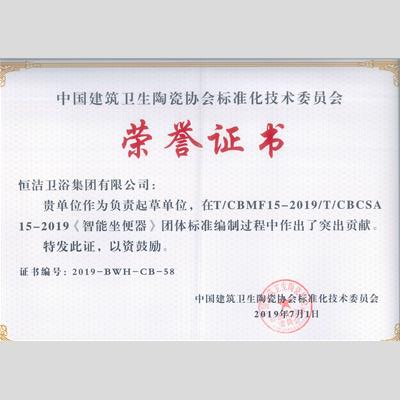 獎 項:《智能坐便器》團隊標準編制突出貢獻 ——恒潔衛浴集團有限公司