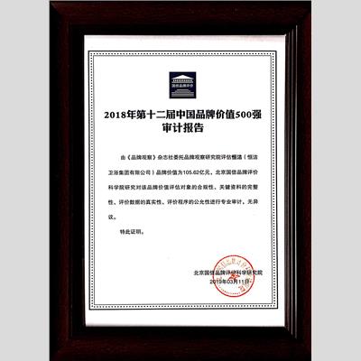 獎(jiǎng) 項(xiàng):2018年第十二屆中國(guó)品牌價(jià)值500強(qiáng)審計(jì)報(bào)告