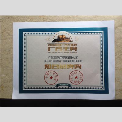 獎 項:2013-2014中國家居產業(北京)十大衛浴品牌