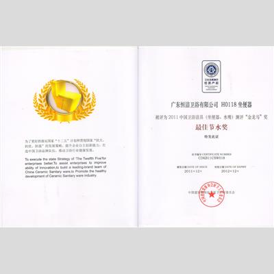 頒發單位:中國陶瓷工業協會、中國衛浴榜組委會