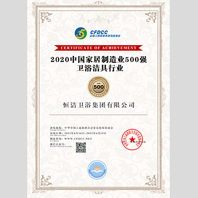 獎(jiǎng) 項(xiàng):2020中國(guó)家居制造業(yè)500強(qiáng)衛(wèi)浴潔具行業(yè)——恒潔