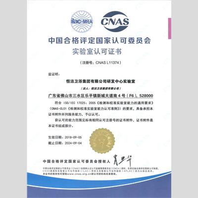 獎 項:實驗室CNAS認可證書