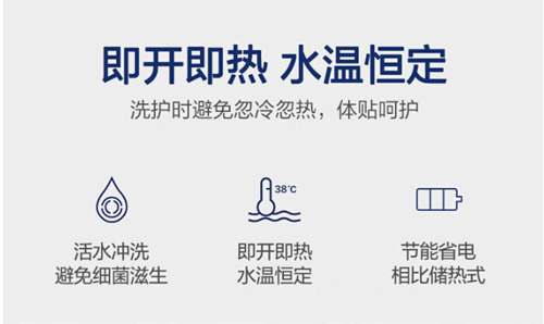 即熱式:活水即時加熱,無需儲存熱水,更節能衛生,能避免細菌滋生。