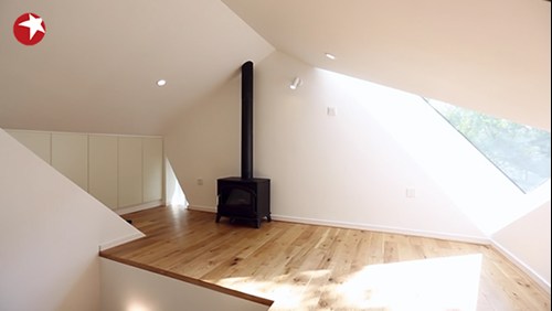 外立面的保溫得到保障后,設計師對于室內格局也進行了重新規劃。利用房屋高低落差,在二樓做了一個夾層空間作為女兒的臥室。同樣為了保溫,設計師還給鋼結構的梁架穿上了一層厚厚的棉被,為屋頂做了完善的保溫工作。