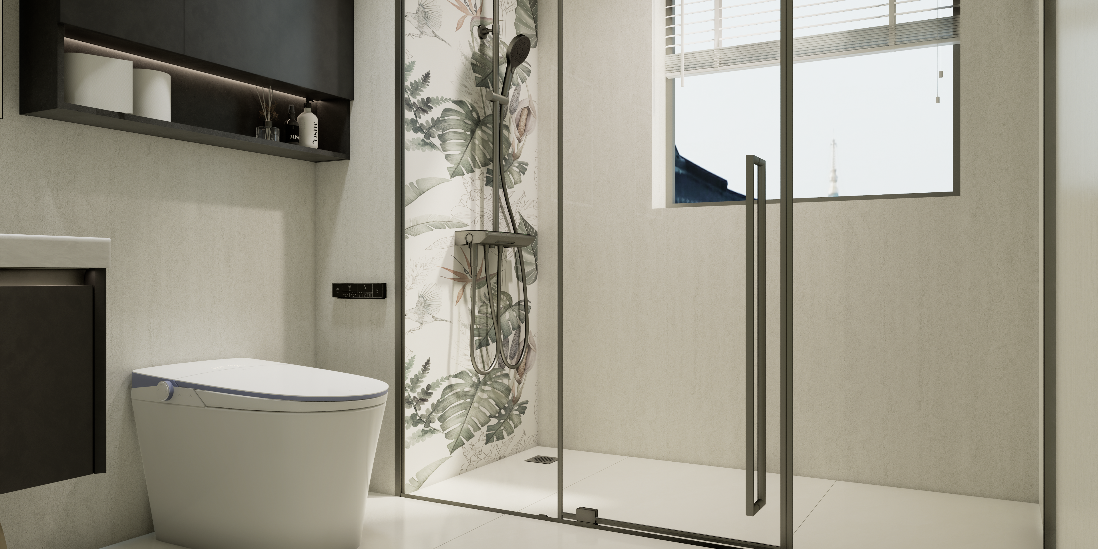 整體風格簡約現代,滿足多口之家使用需求。增加收納空間及合理分區,綜合考量每位家庭成員需求,定制安全、舒適、溫暖的衛浴環境,提升全家人的生活幸福感。