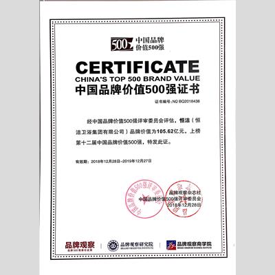 獎 項(xiàng):2018中國品牌價(jià)值500強(qiáng)企業(yè)