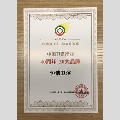 獎 項(xiàng):中國衛(wèi)浴行業(yè)四十年 20大品牌