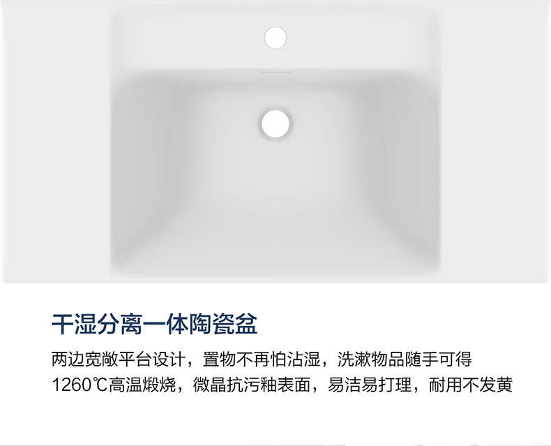 - 干濕分離一體盆,置物不再怕沾濕;兩邊寬敞平臺設(shè)計(jì),洗漱物品隨手可得