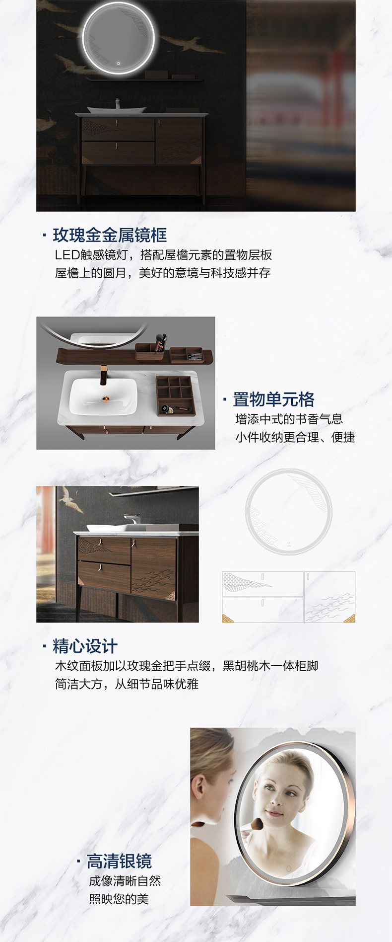 • 汲取仙鶴、祥云、水紋等傳統中式宮廷元素,締造新中式美學衛浴空間;