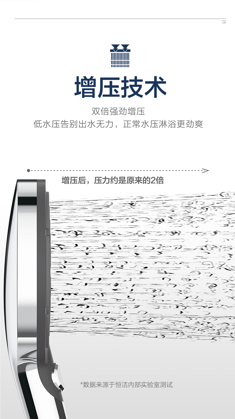 - 恒潔增壓技術(shù),0.45mm極致細孔設計,出水密集柔和