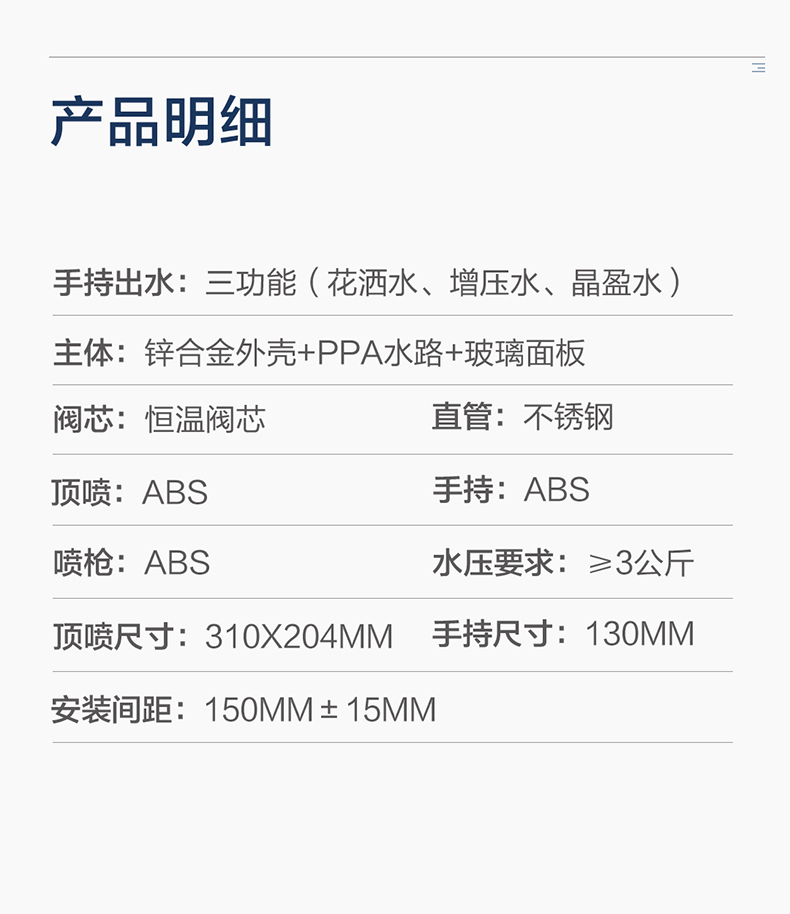 - 恒溫防燙技術(shù),控溫快準穩(wěn),最快0.2s響應, 最小 0.5℃水溫波動