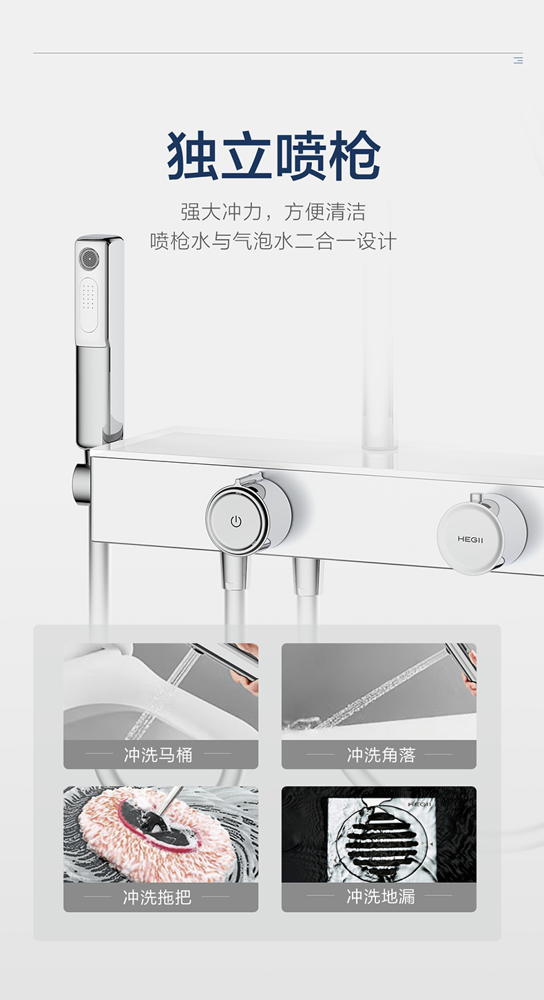- 恒潔增壓技術,0.45mm極致細孔設計,出水密集柔和