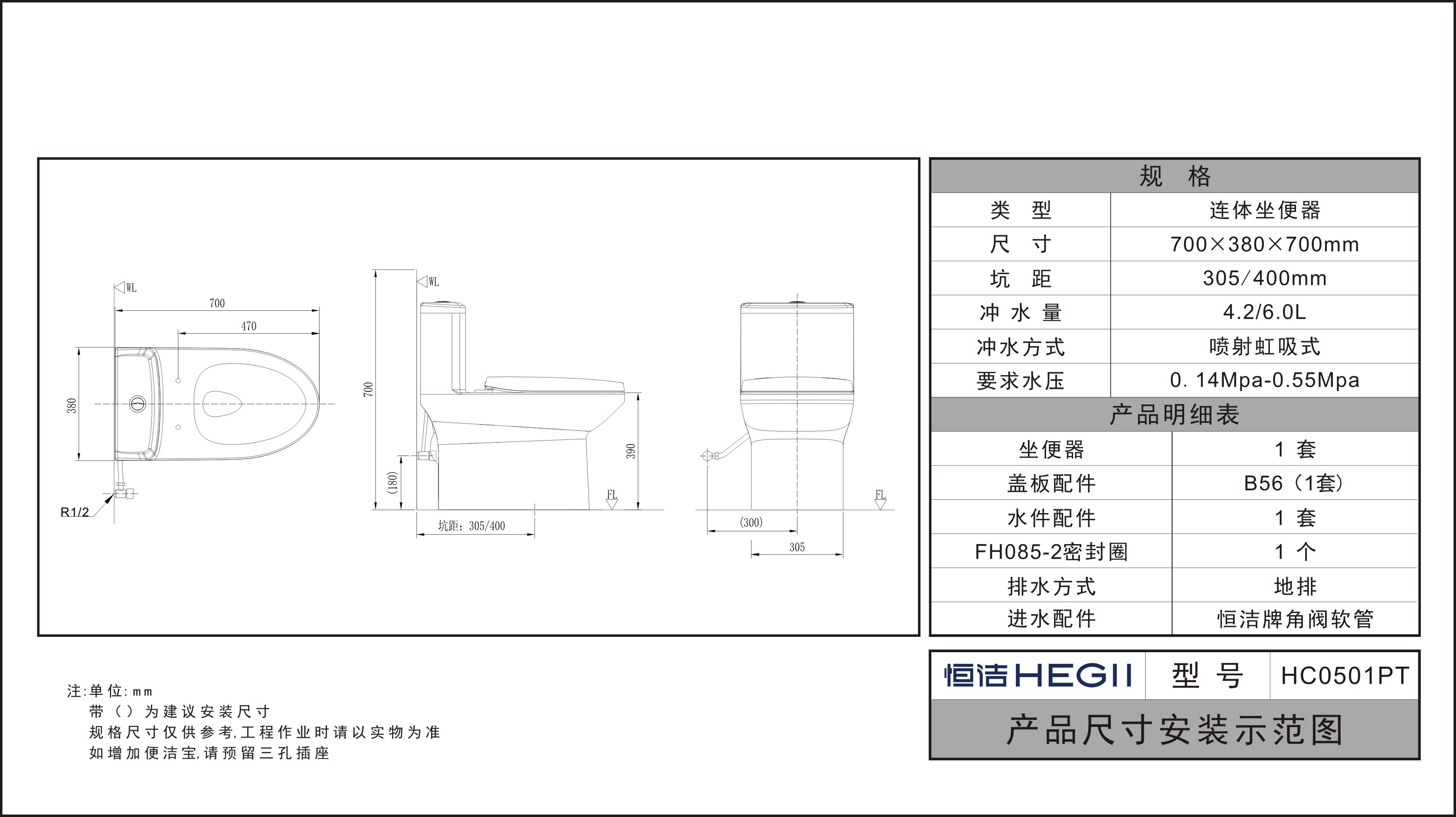 坑距:305/400mm